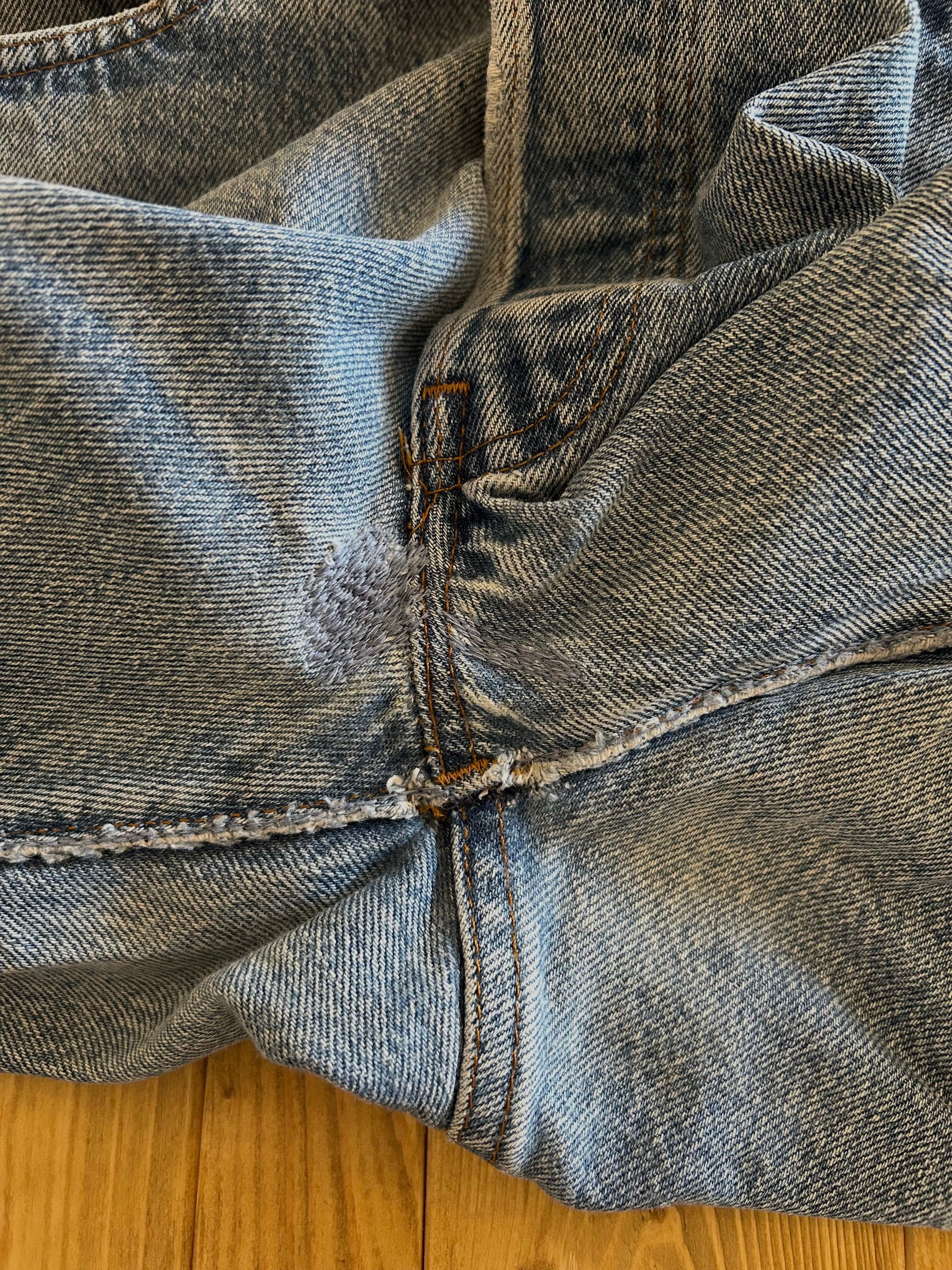 薄めの色、ダメージ、リペア、ペンキなど雰囲気抜群の一本。希少になりつつある80’s501。サイズ合う方オススメです。