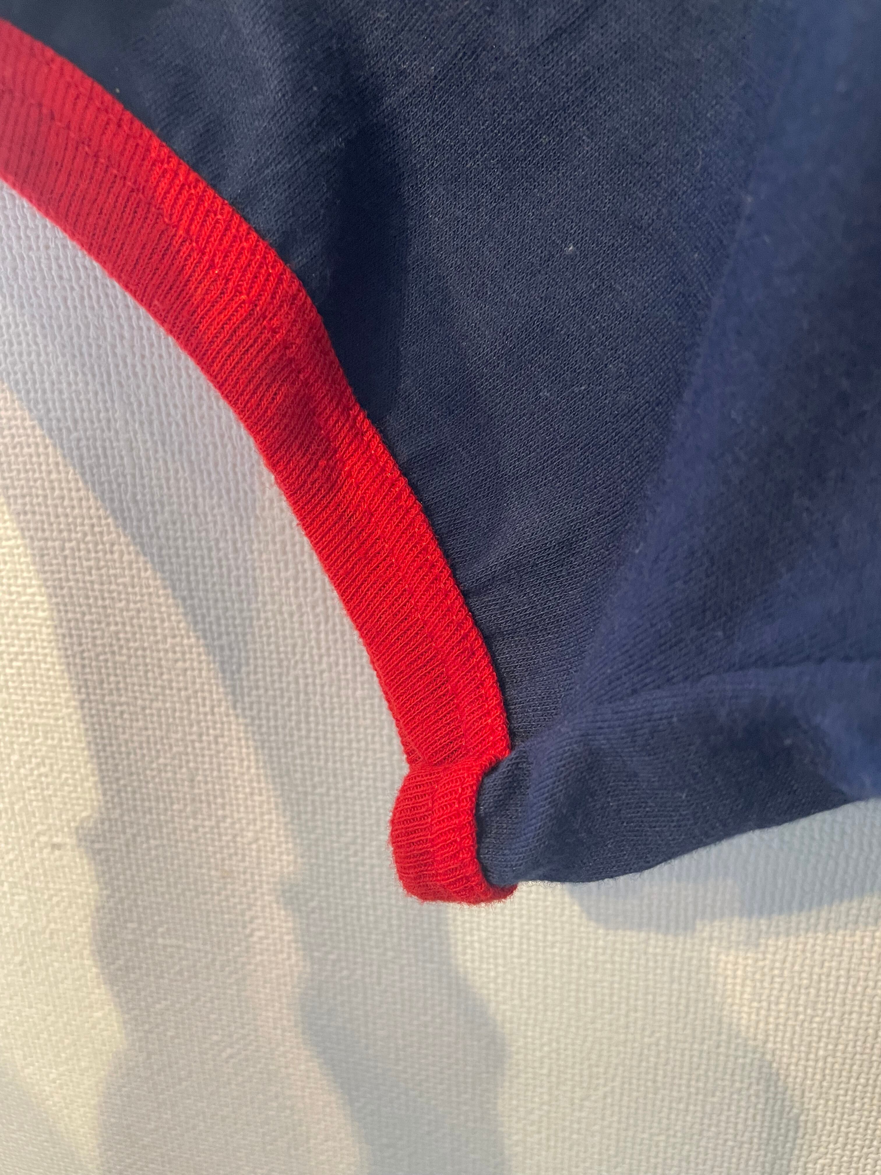 紺に赤いパインピングが入るリンガーt。